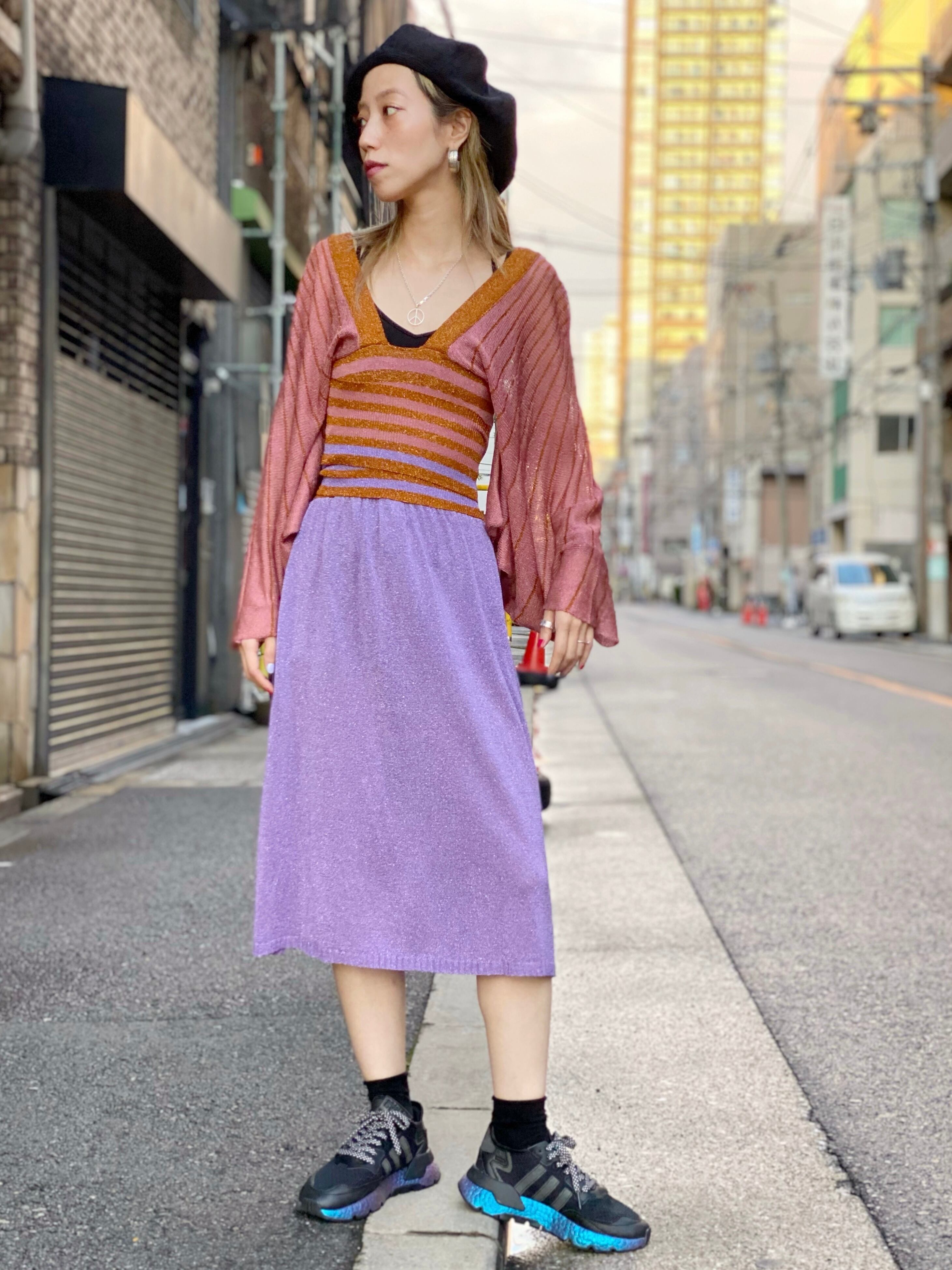 memo:madeinitaly キモノスリーブになっていてとっても個性的で尚且つ上質、上品なドレスです!!薄手のニットなので今からの季節でもgoodです!