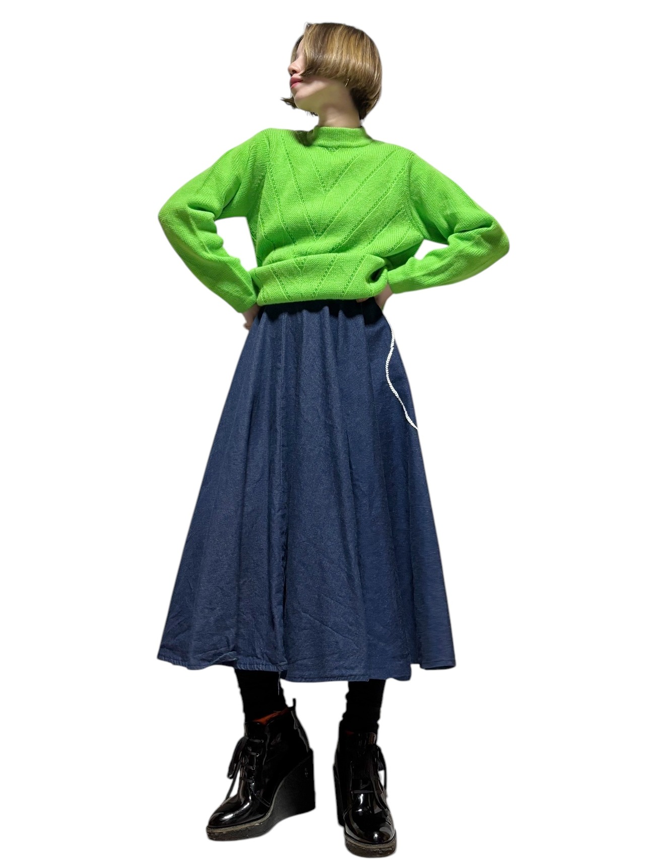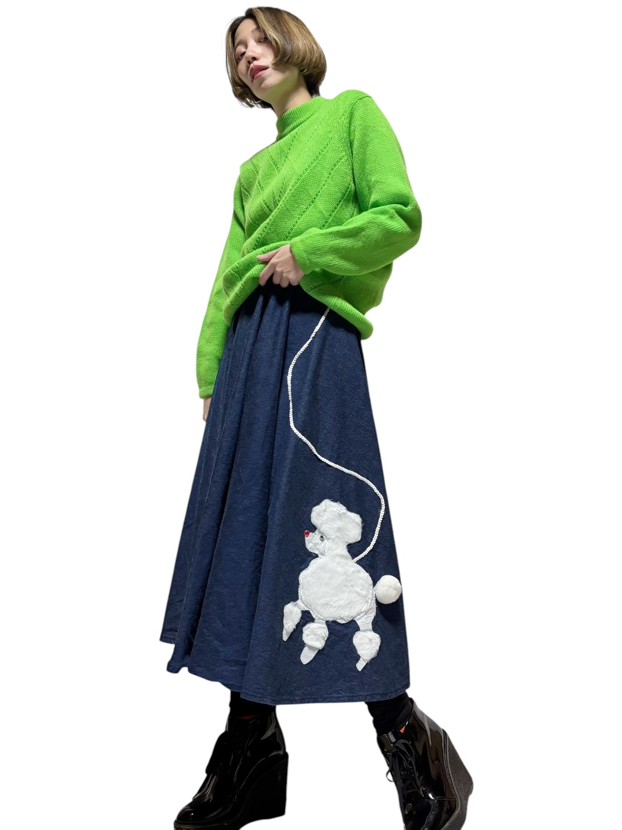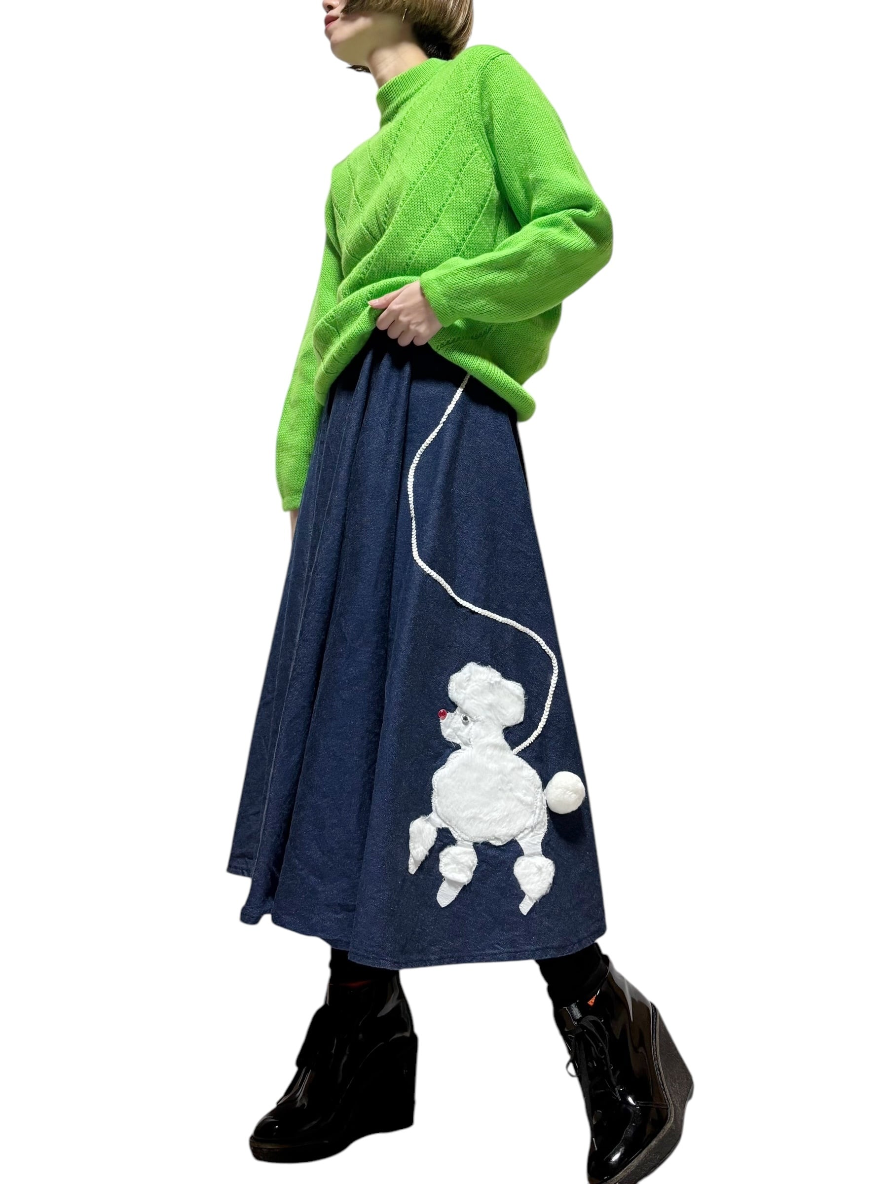 [VINTAGE]50〜60's dog design denim circular SK